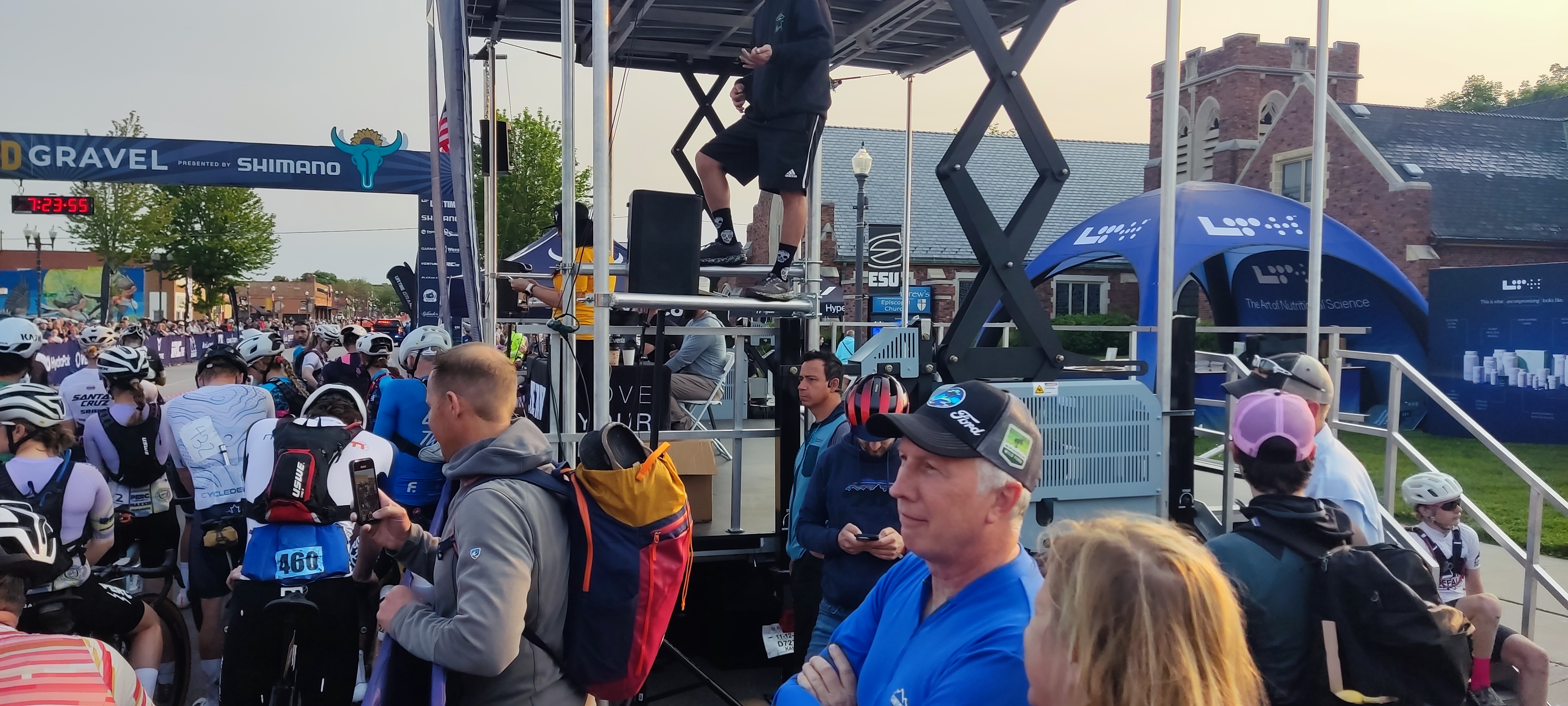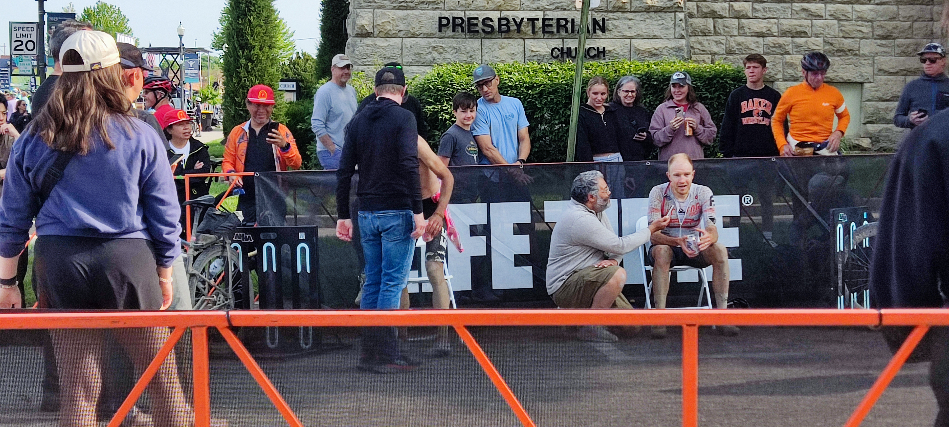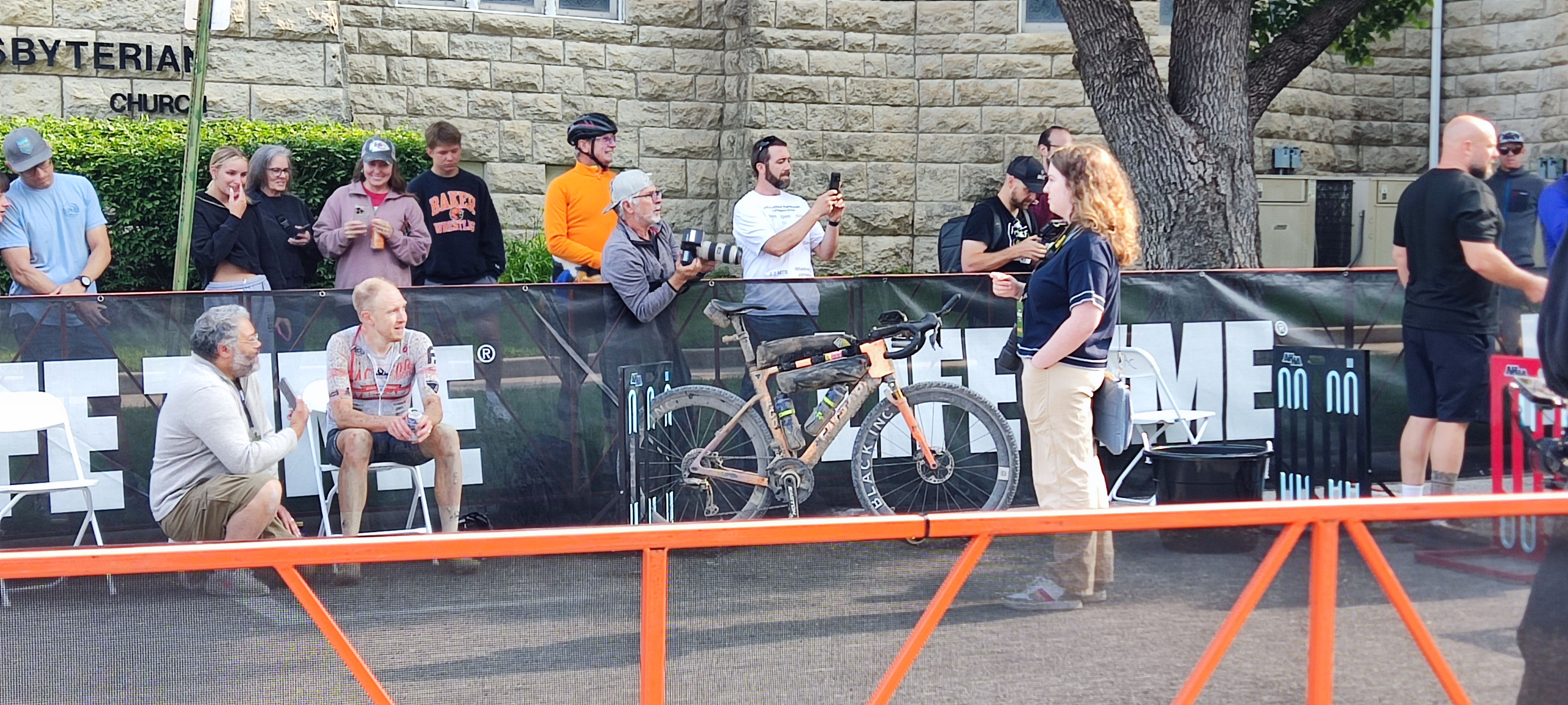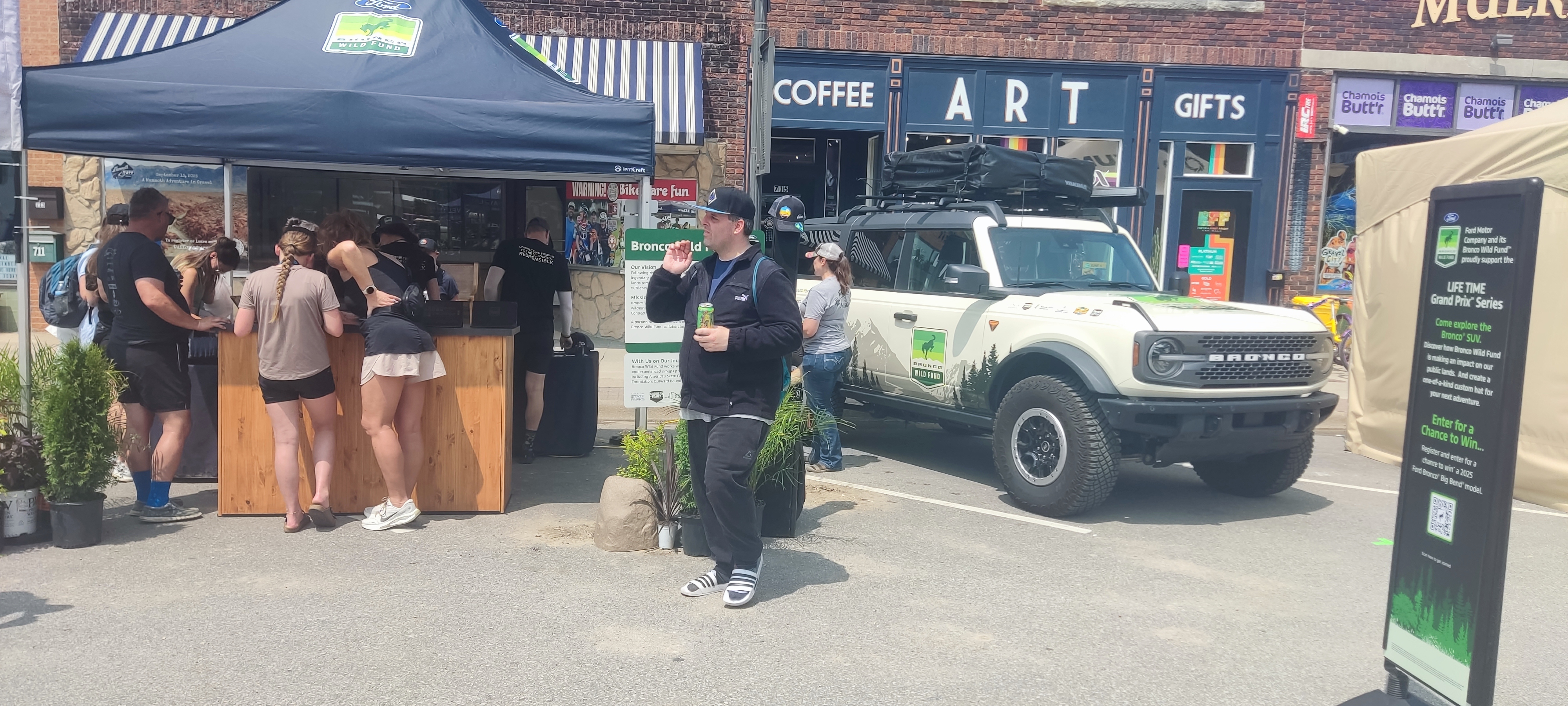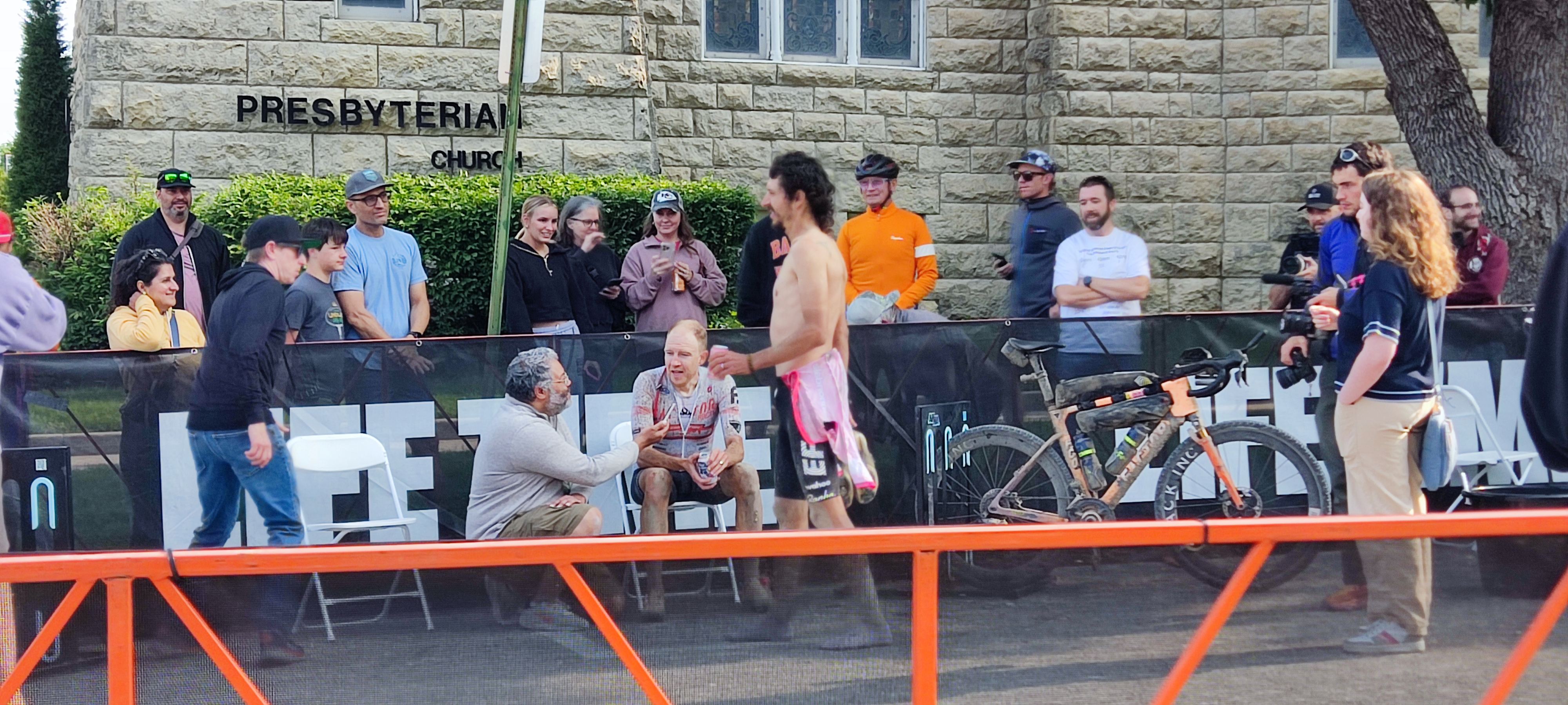 The elite finishers' area, featuring XL winner Rob Britton. |